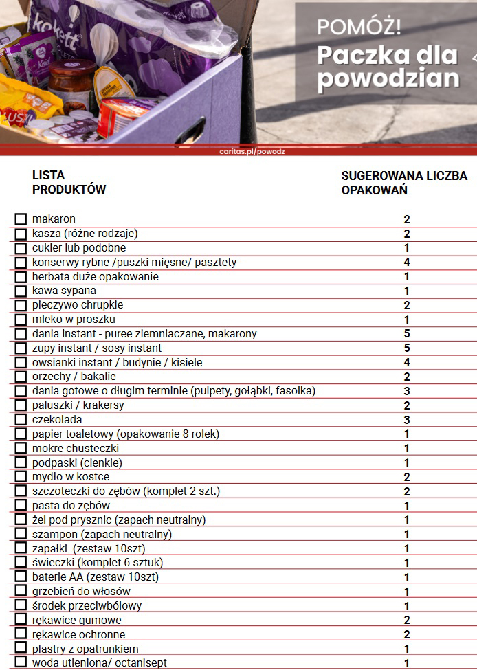 Caritas Archidiecezji Warmińskiej zachęca do jak najszerszego włączenia się w pomoc osobom poszkodowanym w powodzi na południu Polski.