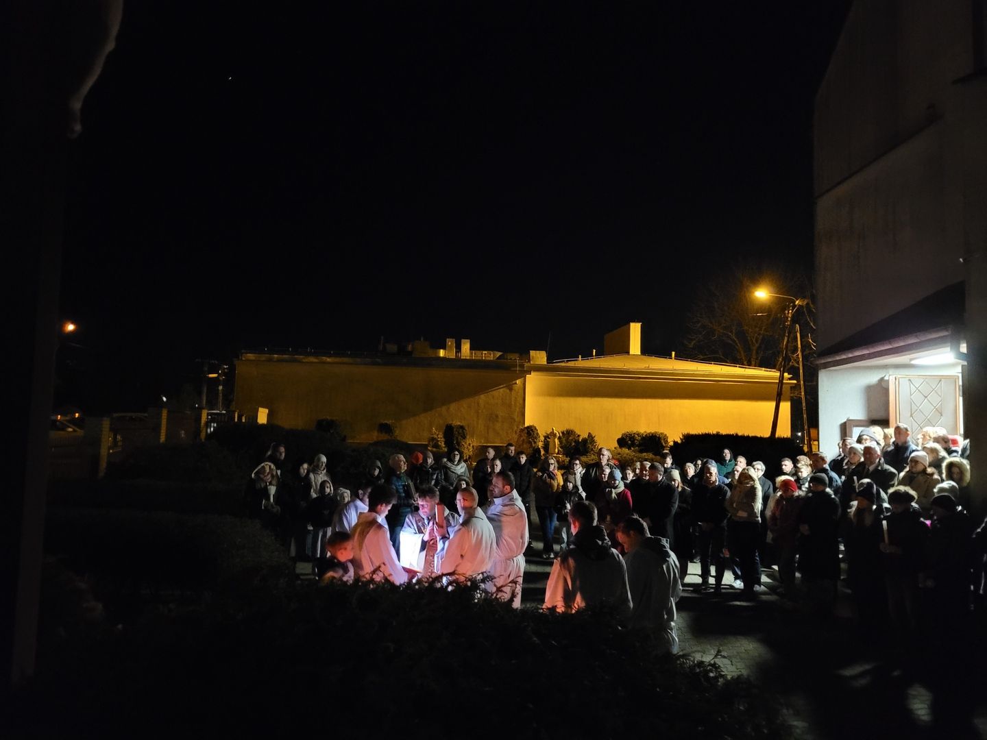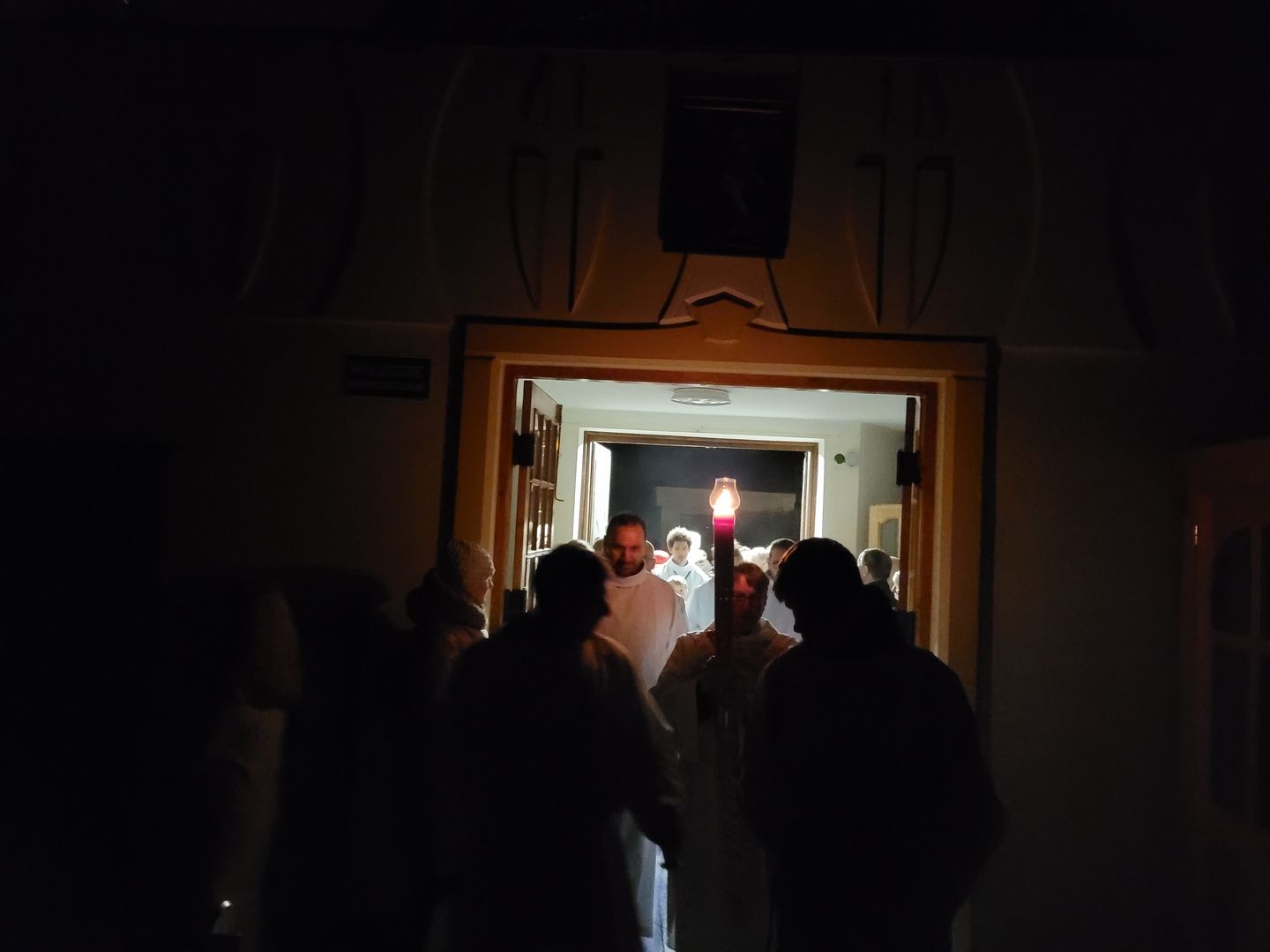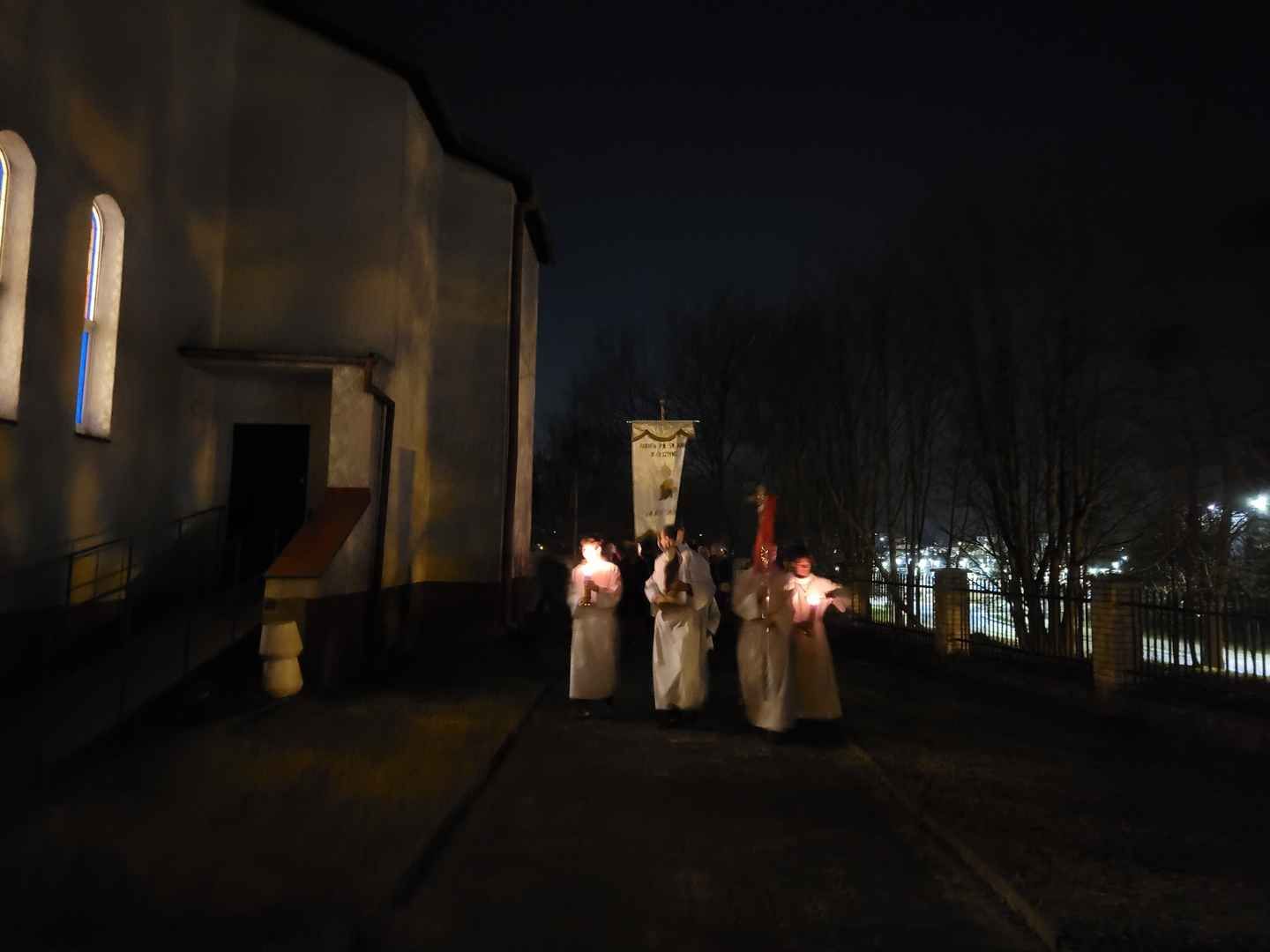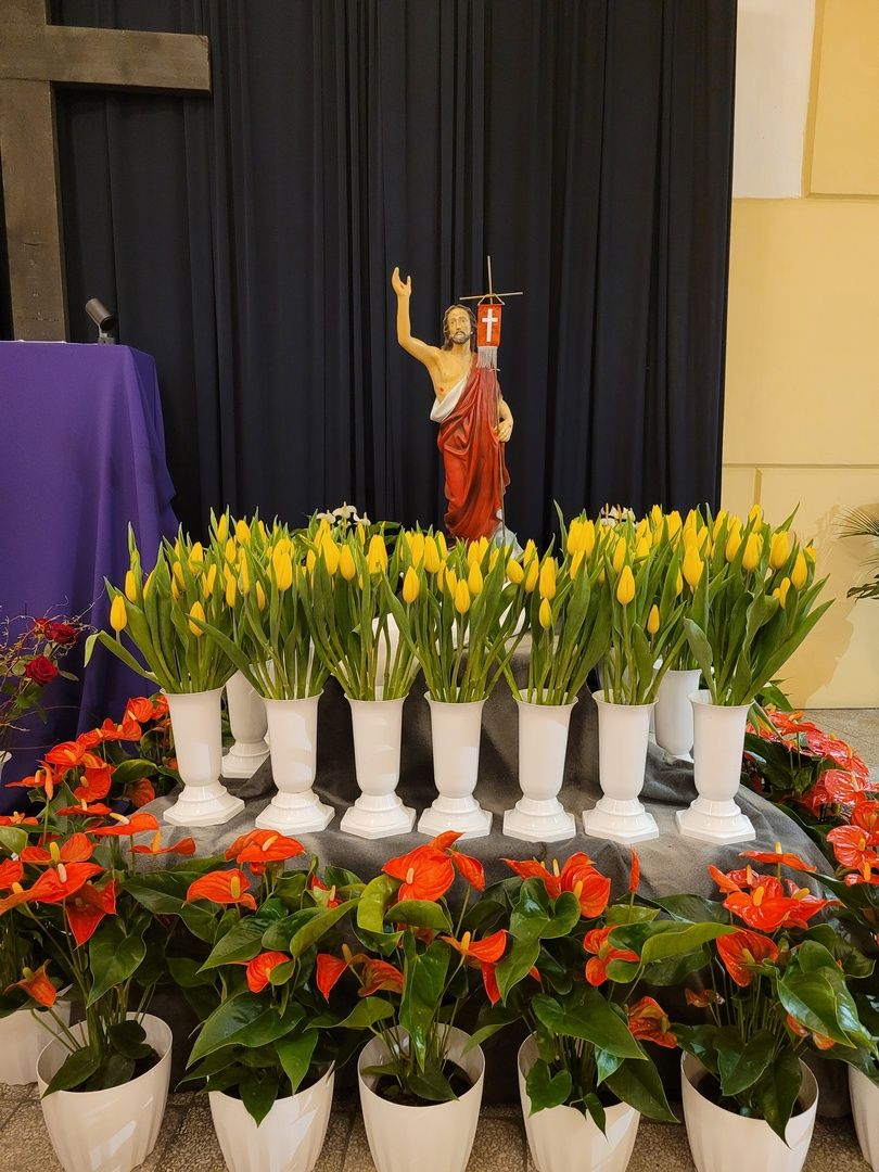 W Wielką Sobotę od godz. 8:30 do godz. 11:30 na Zielonej Górce ks. Tomasz błogosławił pokarmy na stół wielkanocny. O godz. 12:00 również w Nikielkowie. Do godz. 21:00 trwała osobista adoracja Najświętszego Sakramentu, a potem rozpoczęła się liturgia Wigilii Paschalnej. Mocno wiało, ale udało się zapalić paschał przed kościołem. Ta, tak rozbudowana liturgia zakończyła się procesją rezurekcyjną wokół naszego kościoła.